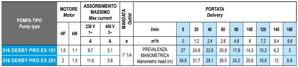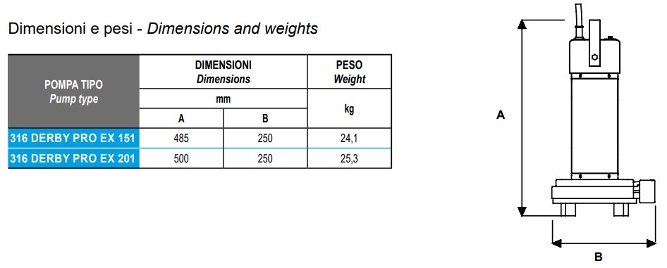 De volgende specificaties zijn van toepassing voor de EX Derby ATEX dompelpomp. Meer informatie vindt ook in de brochure.