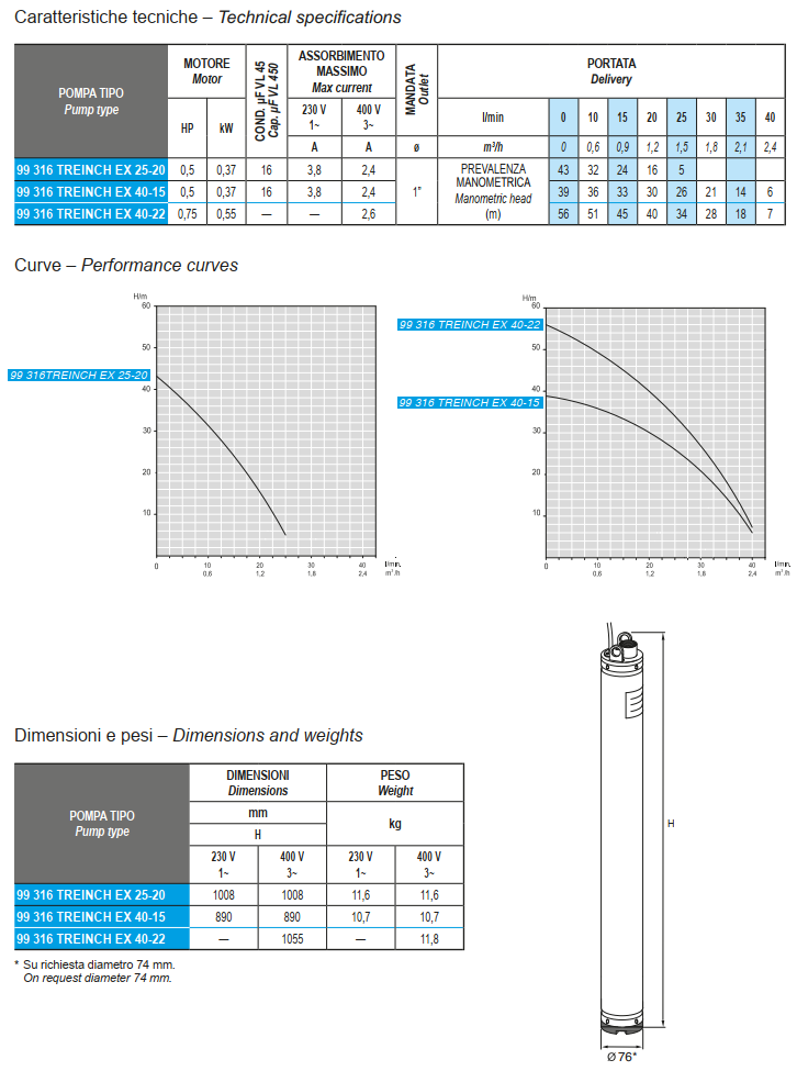In tegenstelling tot standaard dompelpompen beschikt de 99 316 Treinch EX over een volledig AISI 316 roestvaststalen opbouw, gecombineerd met een meertraps centrifugaal systeem en een hydraulisch gedeelte dat onder de motor is geplaatst voor optimale koeling en een langere levensduur.