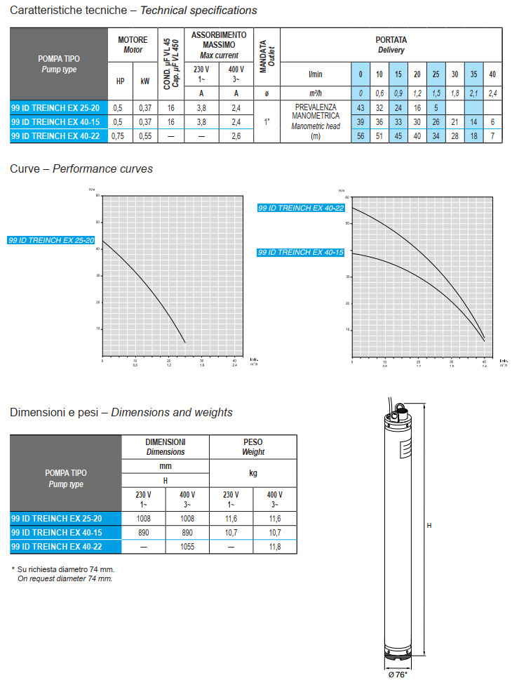 De OFT Pumps 99 ID Treinch EX is een krachtige en volledig ATEX‑gecertificeerde 3‑inch dompelpomp, speciaal ontwikkeld voor situaties waar vloeistoffen verontreinigd zijn met koolwaterstoffen zoals benzine, diesel, kerosine, methaan, propaan, oliën en andere vluchtige stoffen.